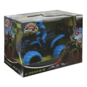 Motor < Co - Quad teledirigido (varios colores), un quad controlado por radio. Este quad controlado por radio de 27 MHz atraerá a los amantes de las emociones fuertes. Con sus grandes ruedas motrices dentadas, puede hacer todo terreno. Vehículo radiocontrol a escala 1/10, con un piloto que está listo para ir a toda velocidad. Requiere 6 pilas AA (no incluidas). Edad recomendada: + 6 años. Varios colores . La selección del color se hará según la disponibilidad. Puedes recibir cualquier color del surtido al realizar la compra, incluidas referencias que no figuran en las fotos. Precio por unidad. Advertencias de Seguridad: PELIGRO DE ASFIXIA: Contiene piezas pequeñas que podrían provocar asfixia en caso de ser ingeridas por el niño/a. No recomendable para menores de 3 años.