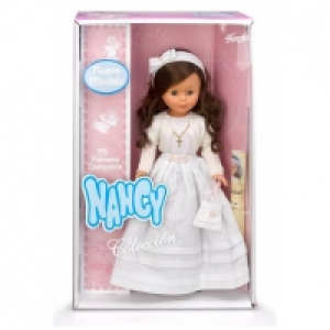 Nancy - Muñeca Nancy Comunión - Morena , la muñeca Nancy de pelo oscuro vestida de primera comunión y con los complementos adecuados. ¡El regalo de Primera Comunión! Edad recomendada: +4 años. Advertencias de Seguridad: PELIGRO DE ASFIXIA: Contiene piezas pequeñas que podrían provocar asfixia en caso de ser ingeridas por el niño/a. No recomendable para menores de 3 años.